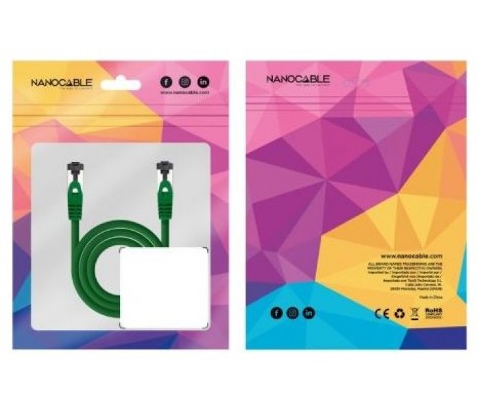 CABLE DE RED LATIGUILLO SSTP CAT8.1 AWG26 0.25 M VERDE NANOCABLE (Espera 4 dias)