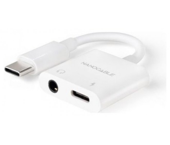 NANOCABLE CABLE ADAPTADOR USB-C A JACK+USB-C/H PD 60W,BLANCO