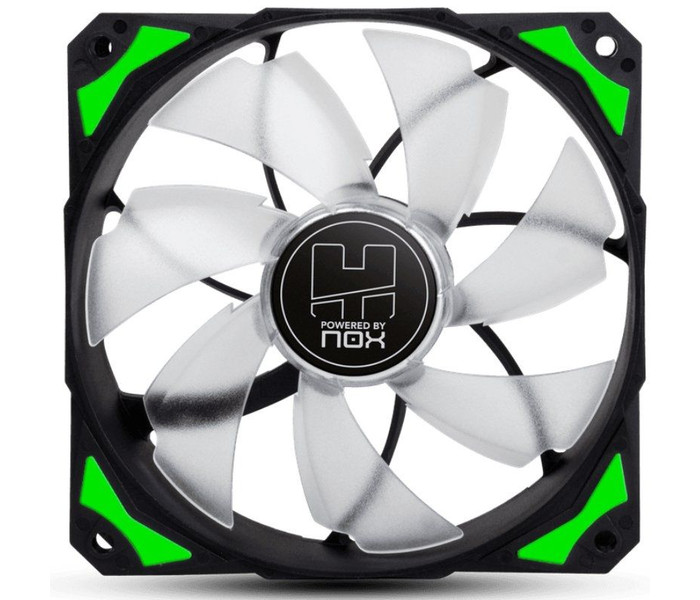 H-Fan son los ventiladores de la serie Hummer. Ventiladores de 120 mm disponibles con LEDs en cuatro colores diferentes que te proporcionarán una excelente ventilación de manera eficaz y silenciosa.\\n\\n- 7 aspas traslúcidas\\n- Adaptador reductor de velocidad incluido\\n- Rodamientos hidráulicos\\n- LEDs brillantes\\n- Diseño silencioso optimizado\\n- Esquinas con soporte de goma\\n\\nFlujo óptimo de aire\\n\\nSus aspas aerodinámicas te ofrecen una mínima resistencia al aire, proporcionando la mejor ventilación posible a todos los componentes y garantizando un continuo flujo de aire en el interior del PC.\\n\\nVentilación silenciosa\\n\\nH-Fan LED cuenta con esquinas con soporte de goma que absorben las vibraciones ofreciendo un alto rendimiento a un bajo nivel sonoro.\\n\\nIncluye un cable adaptador para reducir la velocidad de rotación del ventilador de 1600 a 1000 RPM.\\n\\nDiseño atractivo\\n\\nLa iluminación LED en color verde y su diseño innovador convierten a los ventiladores de Hummer en una opción muy atractiva para personalizar el PC.