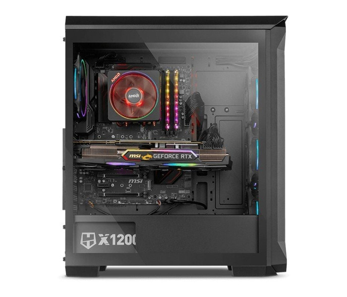 Una robusta torre con un original y rompedor diseño que permite crear espectaculares efectos de color gracias a sus cuatro ventiladores ARGB de 120 mm que incluye y que podrás contemplar en todo momento gracias a su panel lateral de cristal templado. Hummer Quantum te ofrece amplias posibilidades para una configuración de alto rendimiento. Es compatible con placas base ATX, Micro ATX e ITX y dispone de espacio suficiente para ensamblar dos HDD de 3,5â€