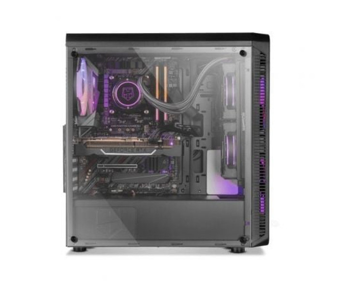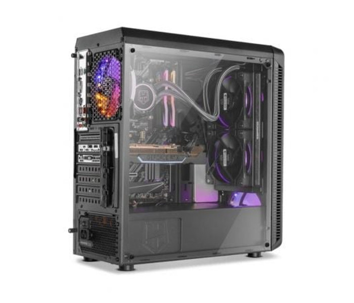 Rgb lighting tempered glass chassis. un robusto diseño que brilla por