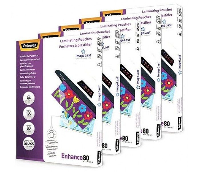 PACK 500 FUNDAS PLASTIFICAR 80 MICRAS BRILLO A4 (216X303 MM) FELLOWES 100142462PACK 500 FUNDAS PLAST..