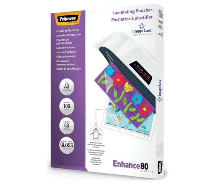 PACK 500 FUNDAS PLASTIFICAR 80 MICRAS BRILLO A3 (303X426 MM) FELLOWES 100144239PACK 500 FUNDAS PLAST..