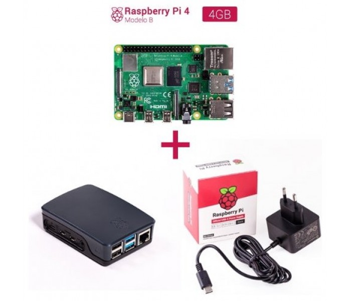 Kit raspberry Pi 4 4 GB. Incluye caja negra