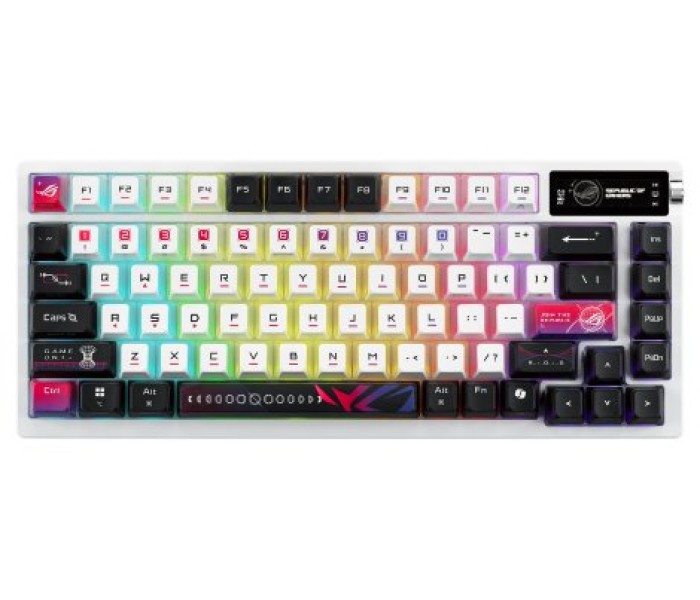 El ROG Azoth X es un teclado para juegos personalizado al 75%, creado para jugadores exigentes y entusiastas de los teclados que demandan precisión y versatilidad. Incorpora interruptores mecánicos ROG NX V2 intercambiables en caliente y teclas ROG con el tema Stellar sublimadas para mejorar la durabilidad y la estética. Una placa de circuito impreso orientada hacia el sur garantiza la compatibilidad con una amplia gama de interruptores y teclados, mientras que cinco amortiguadores, un soporte de junta y una placa de posicionamiento FR4 trabajan al unísono para proporcionar experiencias de tecleo refinadas. El Azoth X cuenta con una pantalla OLED con controles intuitivos, conectividad trimodal que incluye la tecnología ROG SpeedNova de 2,4 GHz, reposamuñecas de silicona, tres ángulos de inclinación y compatibilidad con Mac.