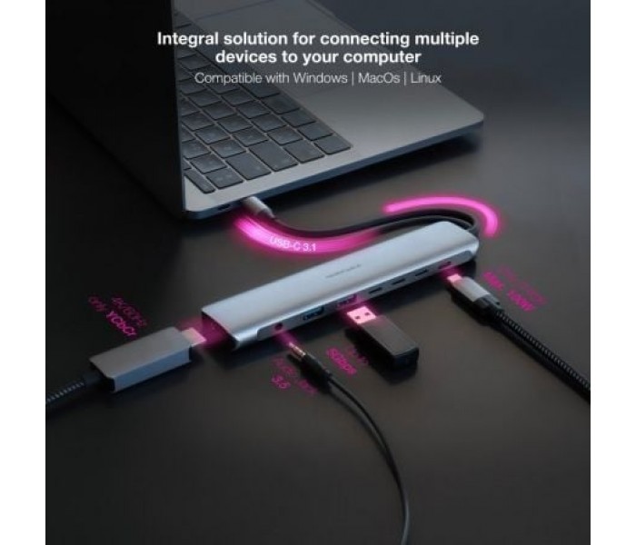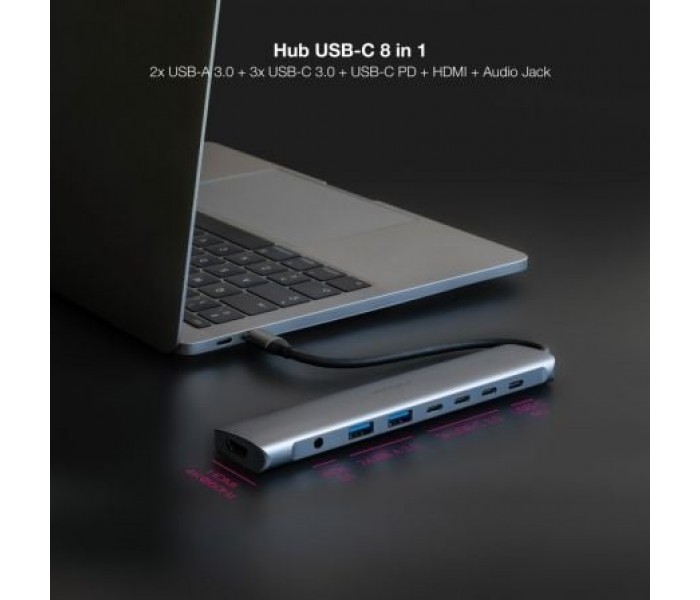 Conexiones USB-C 3.0. Compatible con dispositivos USB-C como portátiles, tablets, smartphones, discos duros externos, memorias USB y otros periféricos.