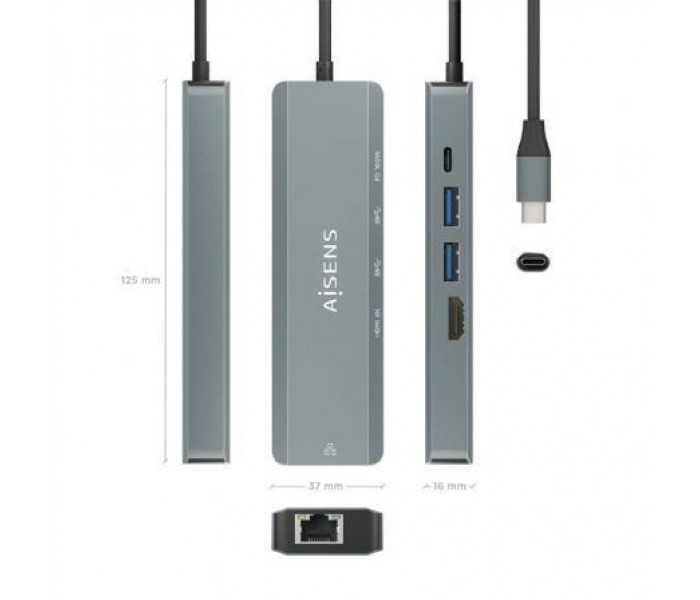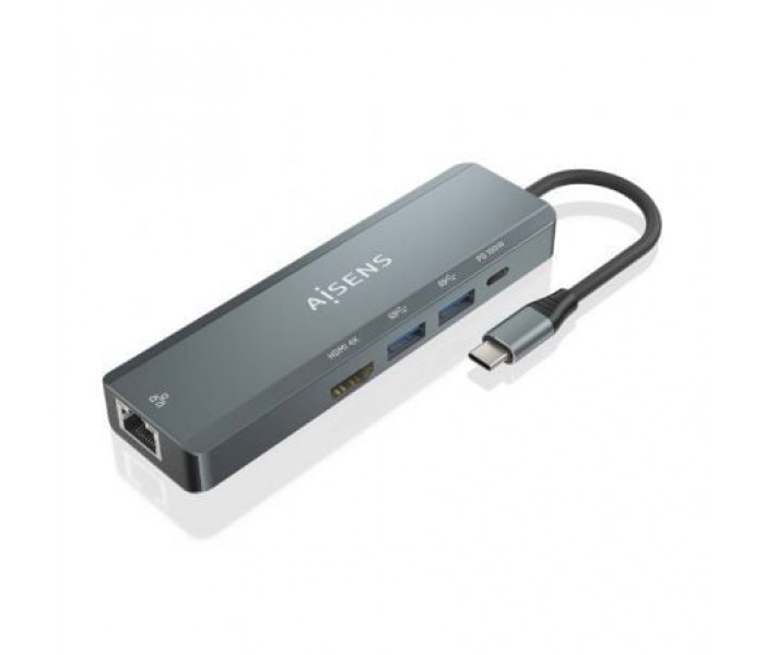- AISENS - USB-C DOCK 5 EN 1, USB-C A 1xHDMI, 1xRJ45, 2xUSB, 1xPD, GRIS, 15CM
