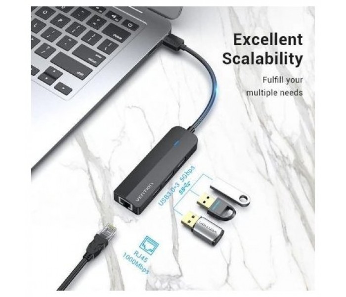 Hub USB 2.0 Vention CHPBB/ 3xUSB/ 1xMicro USB PD/ 1xRJ45EspecificacionesColor negroTipo de conector:..