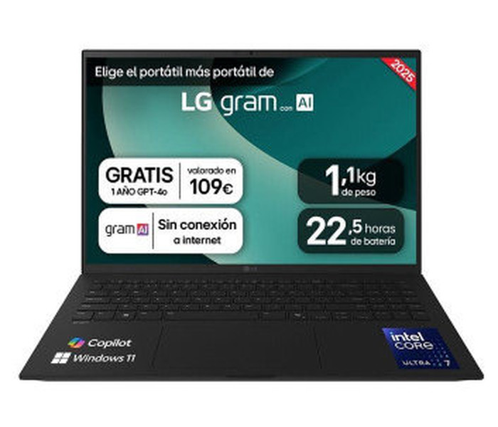 LG Gram 16ZD90T Intel Core Ultra 7 255H Portátil 40,6 cm (16") WQXGA 16 GB LPDDR5x-SDRAM 1 TB SSD Wi-Fi 7 (802.11be) FreeDOS Negro (Espera 4 dias)