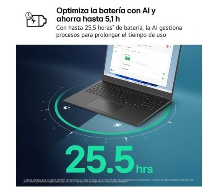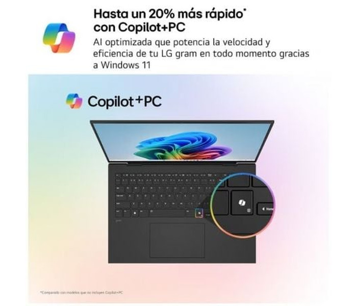 - Software preinstalado: gram Chat, LG Smart Assistant, LG gram Link, LG Security Guard, LG Lively Theme, LG Glance by Mirametrix, Dolby Atmos, Intel Connectivity Performance Suite, LG xboom buds