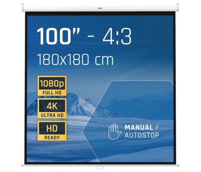 La pantalla manual con sistema autostop PSIMS180 de iggual, con un tamaño de 180x180 cm, es una opción sencilla y eficaz para aulas, oficinas y espacios de negocio que buscan calidad y funcionalidad sin complicaciones. Su superficie cuenta con 4 capas que mejoran el contraste y la nitidez, ofreciendo imágenes claras y colores intensos. El sistema autostop facilita su manejo, permitiendo detener la pantalla en la posición deseada con facilidad. Ideal para montarla en pared, garantiza compatibilidad con proyectores desde SVGA hasta 4K para una visualización óptima.