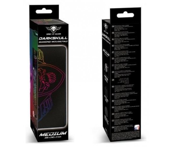 - DARSKULL MEDIUM: La alfombra DARKSKULL tamaño M mide 33 x 24 centímetros. Un grosor de 3 milímetros. Ofrece suficiente espacio para acomodar su mouse.