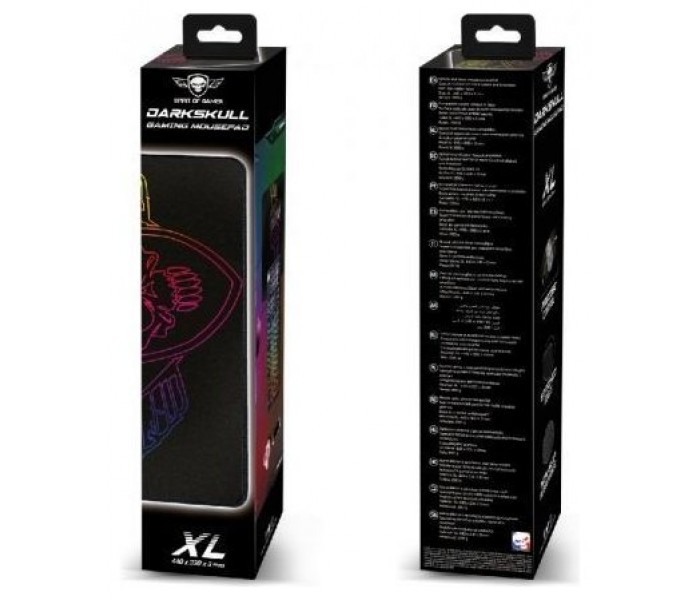 - DARSKULL XTRA LARGE: La alfombra DARKSKULL tamaño XL mide 44 x 33 centímetros. Un grosor de 3 milímetros. Ofrece más espacio para acomodar su mouse.