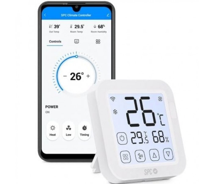 - Contenido de la caja: Controlador de climatización inteligente SPC CLIMATE CONTROLLER, adaptador de corriente y guía rápida