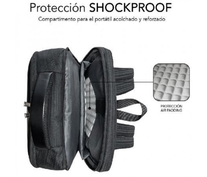Mochila especialmente diseñada para el mundo laboral y de los negocios. Gracias a su altísima calidad y comodidad, se convierte en tu mejor aliado de movilidad para ir con ella a cualquier lugar. Forma parte de la exclusiva gama AirPadding de SUBBLIM con lo que tu portátil estará especialmente protegido. A todo ello se le suman diferentes departamentos y bolsillos para transportar todos tus accesorios, documentos o enseres personales. Ha sido fabricada con unos resistentes materiales que repelen el agua y cuenta con un puerto externo de carga USB para que puedas suministrar energía a tus dispositivos