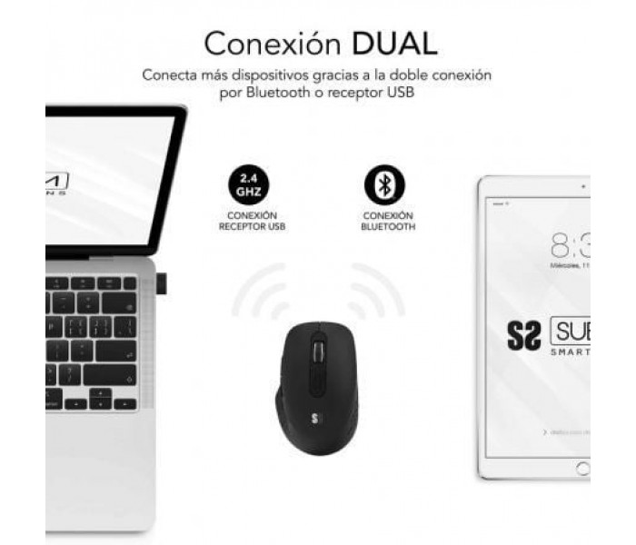 Ratón Inalámbrico por Bluetooth Subblim Dual Flat/ Batería recargable/ Hasta 1600 DPIEste ratón es d..