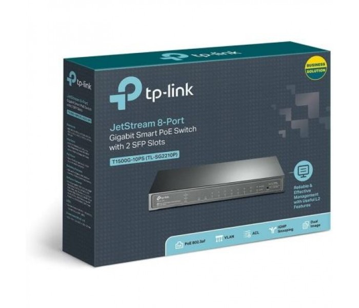 ¿Qué hace este producto? El Smart Switch Gigabit TL-SG2210P de TP-LINK está equipado con 8 puertos RJ45 Gigabit y 2 ranuras SFP. Todos los puertos RJ45 son compatibles con el estándar PoE y cuentan con una potencia PoE total de 53W y características de administración de energía PoE. El switch proporciona un alto rendimiento, calidad de servicio a nivel de empresa, estrategias de seguridad y enriquecidas características de gestión de capa 2. El Smart Switch Gigabit TL-SG2210P de TP-LINK está especialmente diseñado para redes de pequeñas y medianas empresas que requieran una gestión eficiente de la red. El TL-SG2210P viene con un completo conjunto de características, tales como agregación de enlaces, 802.1Q VLAN, Listas de Control de Acceso (ACL), Calidad de Servicio (QoS L2 a L4), control de tormentas e IGMP Snooping para proporcionar a una pequeña o mediana empresa una red que esté orientada al crecimiento al tiempo que garantiza rendimiento y fiabilidad. Lo que es más, su interfaz de administración Web fácil de usar implica una instalación más rápida y una configuración en menor tiempo, proporcionando la solución ideal para su red de negocios. Alimentación PoE compatible con IEEE 802.3af El TL-SG2210P soporta 8 puertos PoE IEEE 802.3af y tiene una fuente de alimentación total de 53W para alimentar cualquier dispositivo de energía compatible con 802.3af. Es una opción eficiente y rentable para trabajar con puntos de acceso inalámbricos, cámaras de vigilancia, teléfonos IP y otros dispositivos que soporten PoE, mientras se deshace de los cables o líneas eléctricas que funcionan alrededor. Compacto y flexible, el TL-SG2210P es ideal para utilizar de forma flexible el PoE para implementar puntos de acceso inalámbricos y cámaras de vigilancia en red basadas en IP para proyectos o redes de pequeñas empresas. Características avanzadas de QoS Para integrar voz, datos y servicio de video en una red, el switch aplica ricas políticas de QoS. El administrador puede designar la prioridad del tráfico basándose en una variedad de medios, incluyendo Prioridad por Puertos, Prioridad 802.1P y Prioridad DSCP para asegurar que la voz y el vídeo son siempre claros, nítidos y libres de retardos. En conjunción con la VLAN de voz que soporta el switch, las aplicaciones de voz operarán con un rendimiento mucho más sencillo. Características abundantes de Capa 2 Para una mayor aplicación de capa 2, el TL-SG2210P soporta una línea completa de características de capa 2 incluyendo etiquetado VLAN 802.1Q, Aislamiento de Puertos, Port Mirroring, STP RSTP MSTP, Protocolo de Control de Agregación de Enlaces (LACP) y la función de Control del flujo 802.3x. Además, los switches proporcionan características avanzadas para el mantenimiento de la red, como Detección de Bucles, diagnóstico del cable e inspección IGMP. La inspección IGMP asegura que el switch transmita de forma inteligente el flujo de multidifusión sólo a los suscriptores adecuados, mientras que el límite de IGMP y filtrado restringe cada suscriptor a nivel de puerto para evitar el acceso no autorizado de multidifusión. Características de gestión a nivel empresarial El TL-SG2210P es fácil de usar y administrar. Es compatible con varias características estándares de gestión fáciles de usar, tales como una intuitiva Interfaz Gráfica de Usuario (GUI) basada en web o la Interfaz de Comandos estándar de la industria (CLI). El soporte SNMP (v1 2 3) y RMON permite que el switch realice un sondeo de información de estado útil y envíe capturas de eventos anormales.
