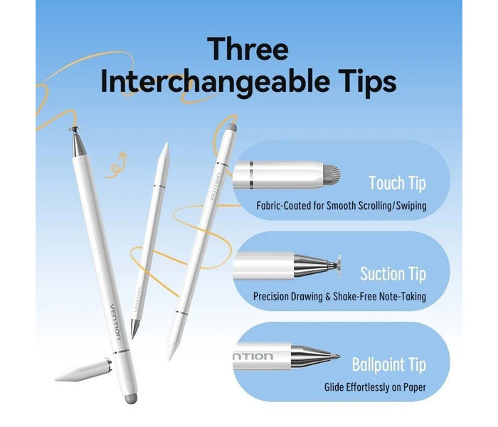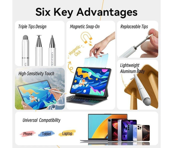 Vention Stylus pen 3 en 1 para tablets/moviles Magnetic KQLW0 Aluminio blanco