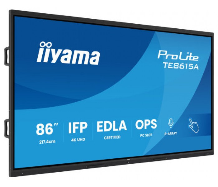 IIYAMA MONITOR INTERACTIVO 86" EDLA,ANDROID 14, 16/128GB UHD IPS, MM 2X 20W + 20W SUBWR, 2X HDMI, DP , 1X USB-C, 550CD/M, HORIZ , MEDIA PLAY USB PORTS, ANTIGLARE, LAN, RS232C, IIWARE WIFI-6/BT 5.0, OPS SLOT, VESA 600X400 (MOUNT INCLUDED) (TE8615A-B