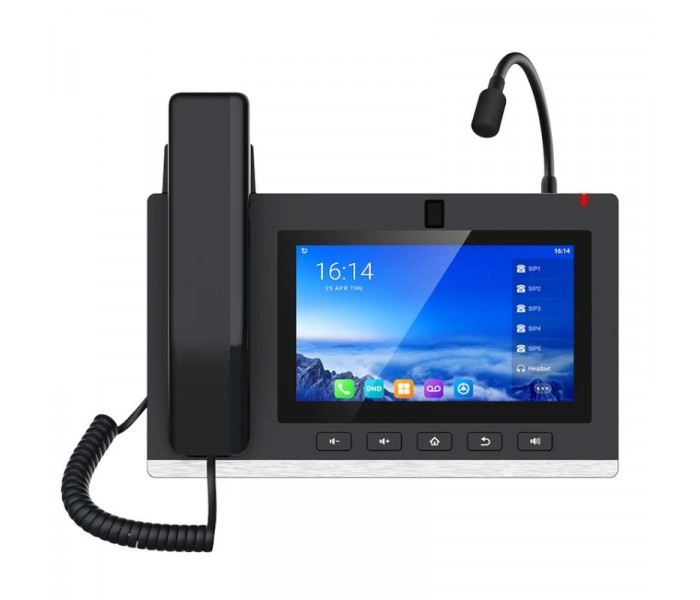 | Características | - Pantalla principal: 7" tactil color 1024 x 600 - Videollamada: bidireccional - Codec de video: H.264 / H.265 opcional (720P / 1080P) - Camara integrada: 5 MP ajustable - Lineas SIP: 20 - Teclas DSS: 116 - Agenda local: 2.000 contactos - Registro de llamadas: 1.000 - Conferencia: 10 vias audio, 3 vias video - Audio HD - Codecs de banda ancha: G.722, Opus - Conectividad inalambrica: WiFi 2,4 GHz y 5 GHz - Red: Ethernet 10/100/1000 Mbps - Alimentacion: PoE - Instalacion: sobremesa (45 y 50 grados) o montaje en pared |