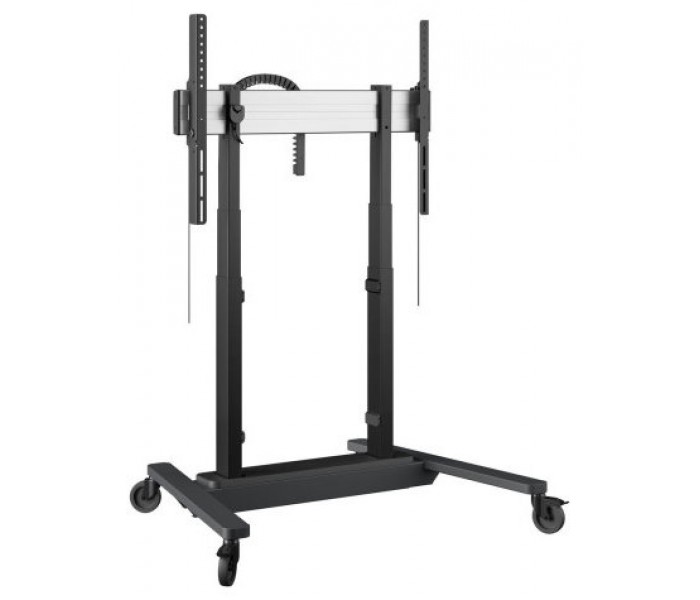 El carro elevador eléctrico para pantallas y televisores RISE 4205 sirve para pantallas de hasta 86"" y hasta 120 kg. Este elevador funciona perfectamente con grandes pantallas interactivas y, a una velocidad de 50 mm/s, eleva la pantalla con seguridad y facilidad hasta la altura deseada. Este elevador también tiene un ajuste de altura de 700 mm, por lo que es ideal para su uso en un entorno escolar o empresarial. De este modo, la naturaleza abierta del bastidor del carro facilita su desplazamiento dentro de edificios de oficinas o escolares (más antiguos).