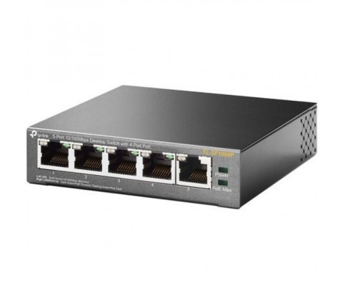- Package Contents: TL-SF1005P, Adaptador de corriente, Manual de Usuario