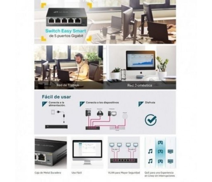 Switch TP-Link LS108G 8 Puertos/ RJ-45 10/100/1000 Estándares y protocolos: IEEE 802.3i / 802.3u ..