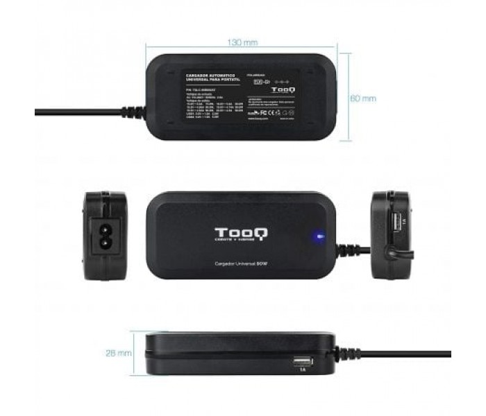 Cargador de Portátil TooQ TQLC-65BS02AT/ 65W/ Automático/ 8 Conectores/ Voltaje 18.5-20V/ 1 USBCarga..