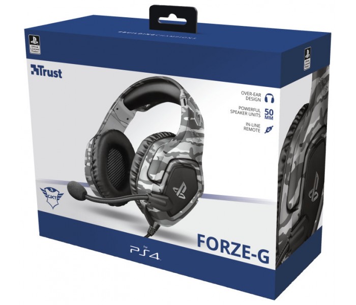 Auriculares gaming exclusivamente para PlayStation®4 con micrófono plegable y diadema ajustableCon licencia oficial para PS4™Diseñados específicamente para este sistema, los auriculares para gaming Forze de Trust para PlayStation®4 consiguen que te sumerjas completamente en el juego. Como producto con licencia oficial para PS4™, el uso de los auriculares da como resultado una experiencia definitiva de gaming con PlayStation®4. Sea cual sea el juego que elijas, prepárate para vivir grandes sorpresas.Sonido potenteDisfruta de un sonido nítido y potente, tanto si estás en zona de guerra, en un estadio o en un circuito de carreras. Gracias a las potentes unidades de altavoz de 50 mm de los auriculares, el sonido de las sesiones de gaming será más envolvente que nunca.Se ajusta para tu comodidadLas suaves almohadillas circumaurales garantizan que los auriculares sean cómodos, incluso después de horas de juego. Utiliza el micrófono para dar instrucciones claras a tus compañeros de equipo o doblarlo fácilmente cuando quieras jugar sin conexión.Robustos y elegantesCon una diadema reforzada ajustable, los auriculares no solo son cómodos, sino también resistentes. Y como producto con licencia oficial para Sony, su potente diseño combina perfectamente con la imagen del sistema PlayStation®4.Solo hay que enchufarlosActiva los auriculares simplemente conectándolos al controlador inalámbrico DUALSHOCK®4. El cable trenzado de nailon de 1,2 m proporciona un espacio más que suficiente para disfrutar de una cómoda experiencia de gaming. Y, gracias a los botones de mando en el cable, puedes ajustar el volumen de los auriculares o silenciar el micrófono sin tener que acceder a un menú.