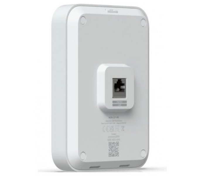 Punto de Acceso Ubiquiti U6-IWPunto de acceso WiFi 6 montado en la pared con un interruptor PoE inco..